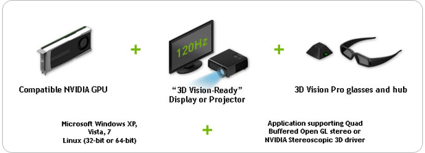 NVIDIA® 3D Vision™ Pro and NVIDIA® Quadro® professional graphics solutions deliver the highest quality and most advanced stereoscopic 3D environment, enabling designers, engineers, digital artists and scientists to see and share their work in true 3D.